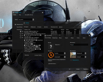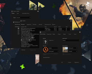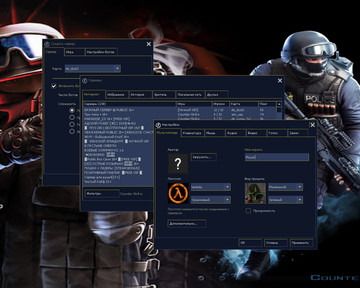 28 скинов оружия, красные модели террористов и синие модели спецназа, темная тема меню с прозрачными и голубыми элементами и ещё шесть дополнений