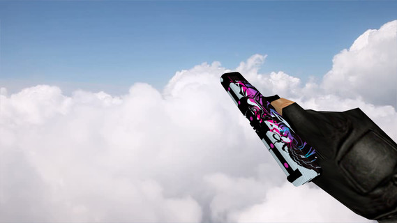 Glock «Неонуар» (Neo-Noir) для CS 1.6 – скин из CS:GO коллекции «Сломанный клык» (Broken Fang) с перчатками спецназа «Мраморный градиент» (Marble Fade). На серую основу вручную нанесено стилизованное пурпурно-голубое изображение девушки.